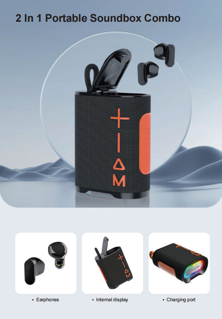 2 in 1 Soundbox Combo TWS Earbuds Earphones Wireless Speaker